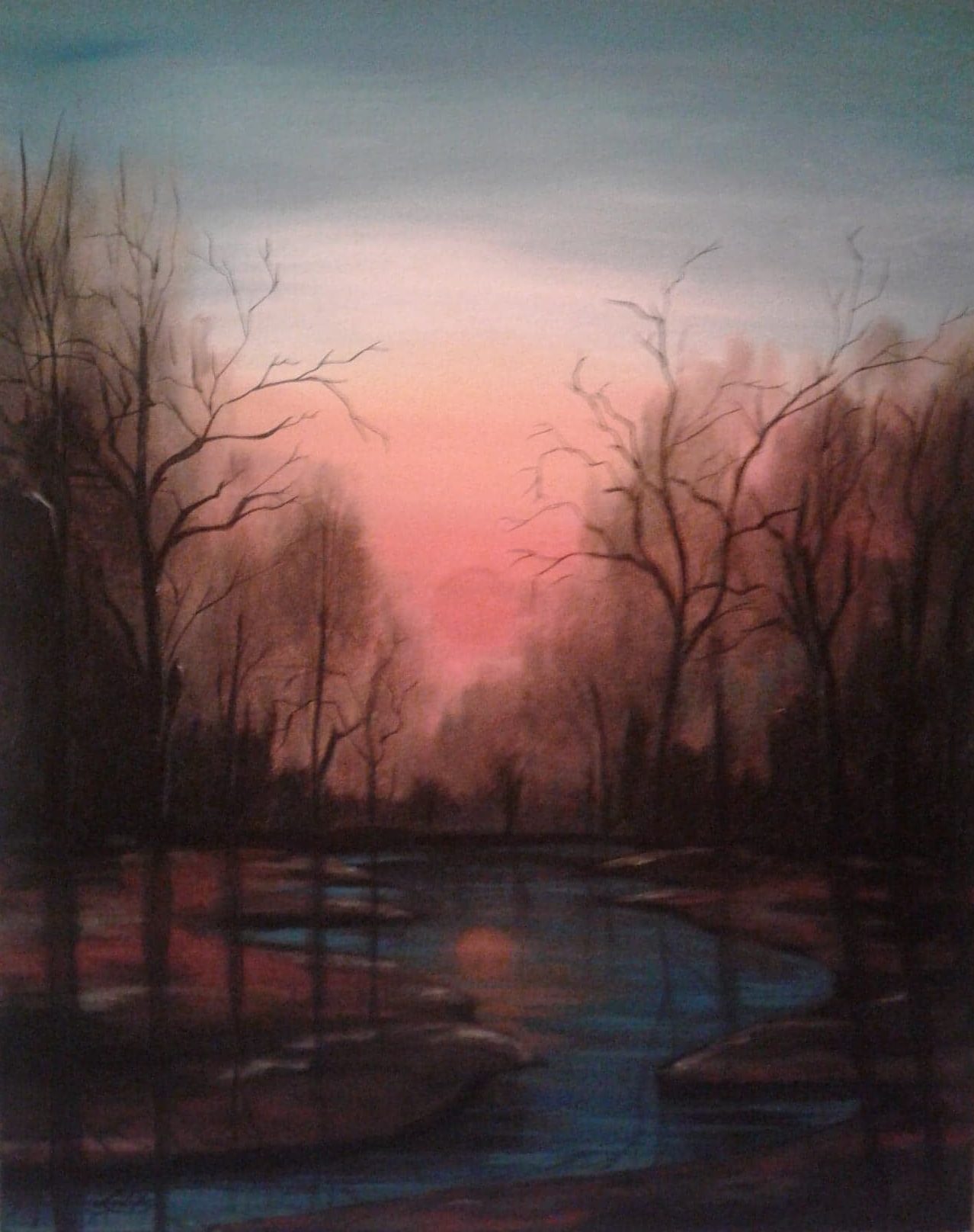 Forest Sunset Painting | Impressionism Art of Dusk, Reflective Water & Silhouetted Trees